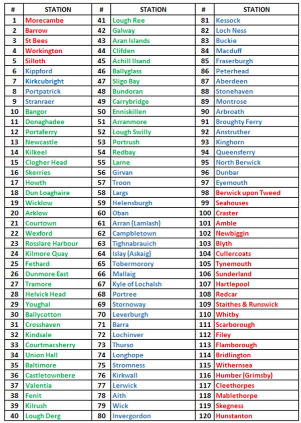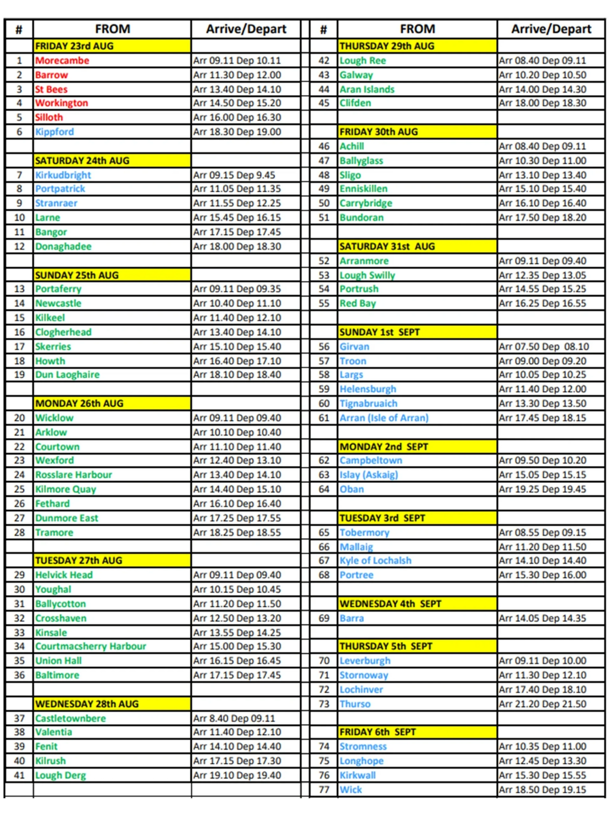 Here is a list of all the lifeboat stations we visited around the British Isles & Ireland.